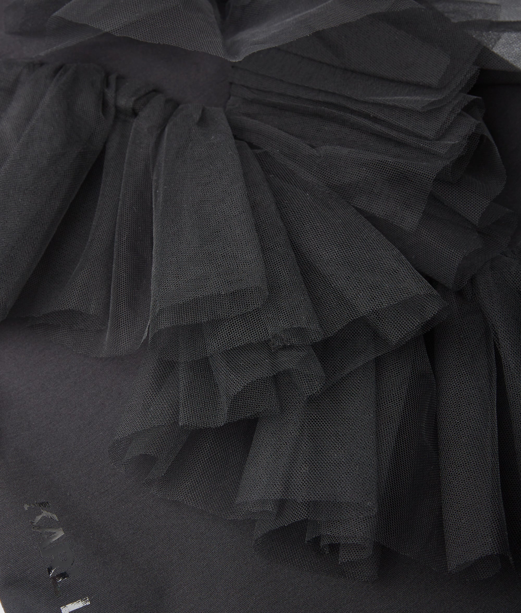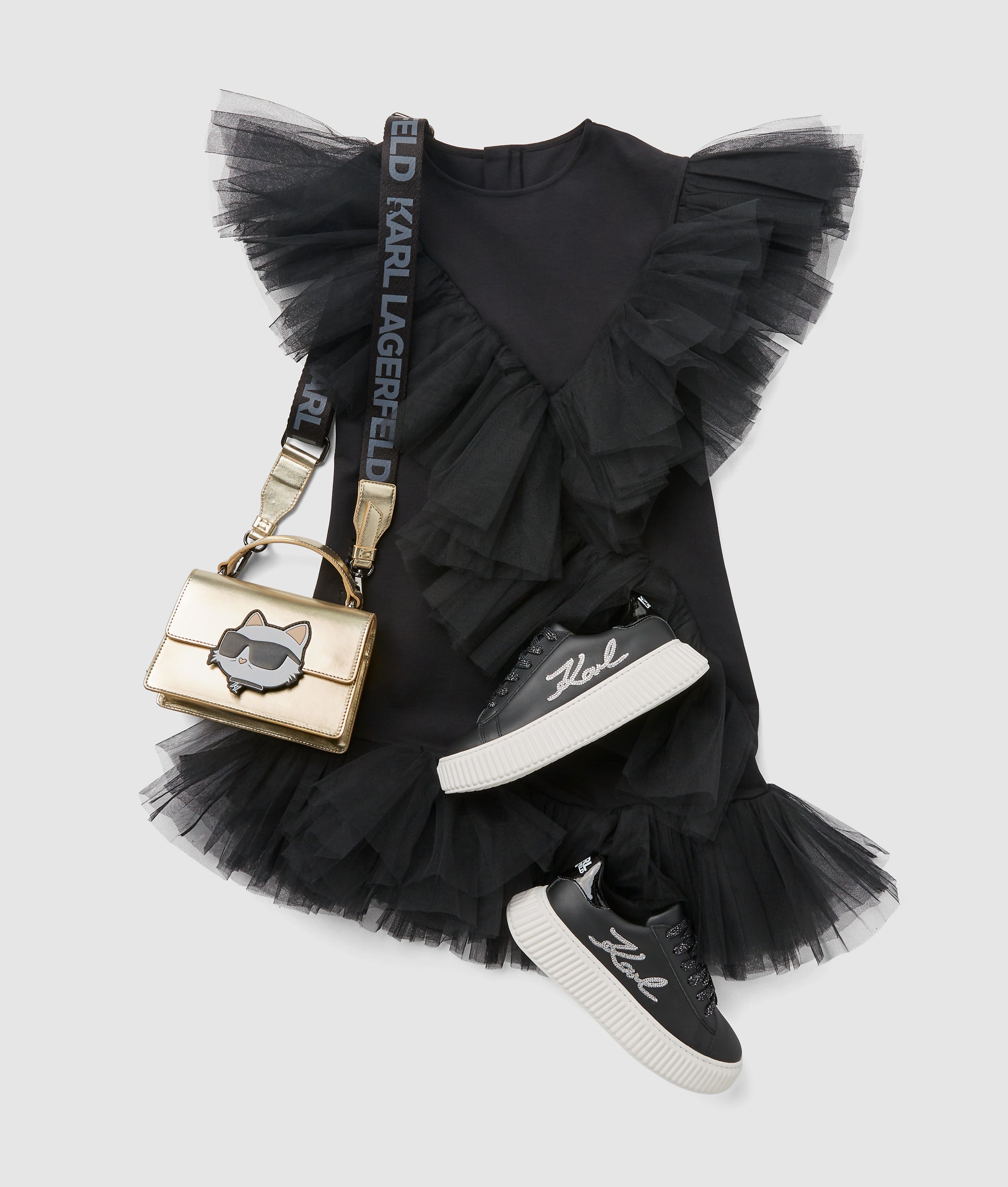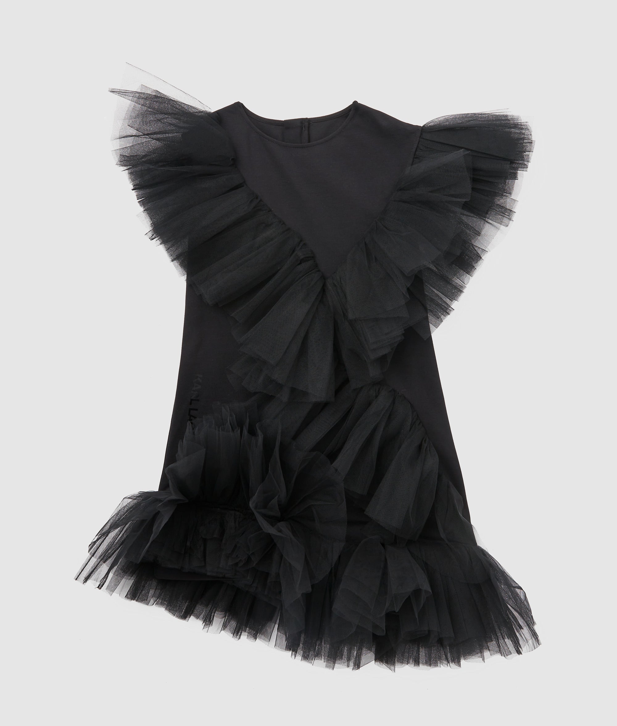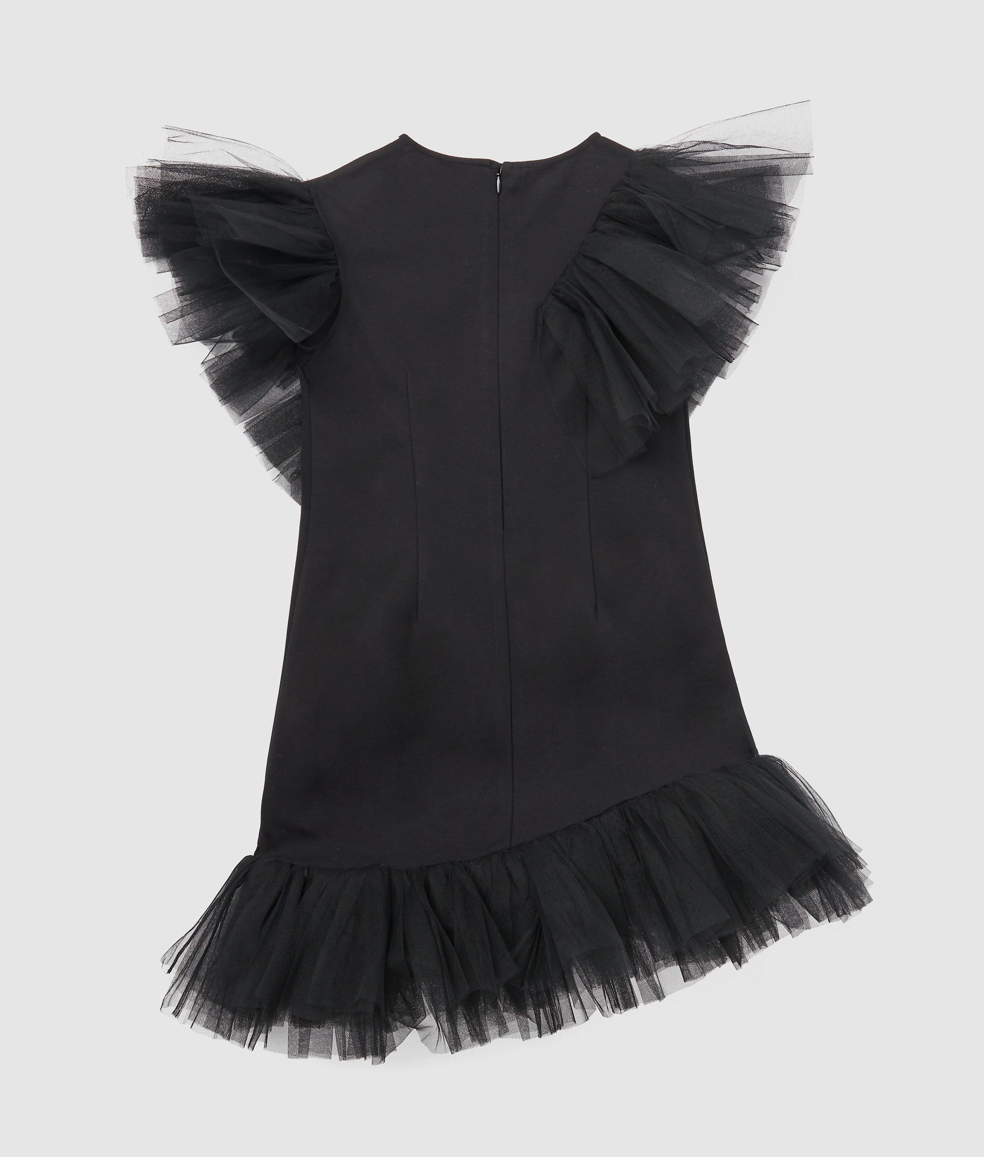 Made for twirling. dancing. and every moment in between. This short-sleeved dress brings the drama with tulle trims and a hint of shine from metallic logo detailing.?