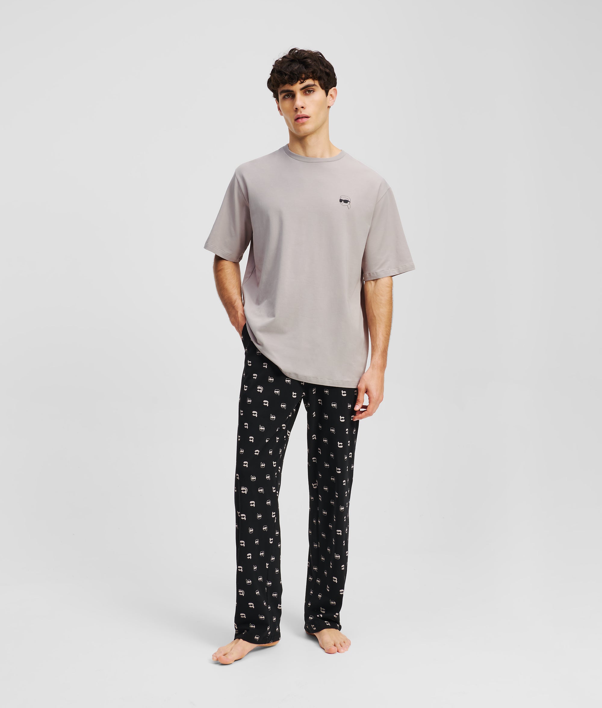 Drift into dreamland with this playful two-piece pajama set. The cozy crew-neck T-shirt features a subtle IKON artwork print. while the pants boast an elasticated waistband adorned with an all-over IKON design. Perfect for relaxed nights at home.
