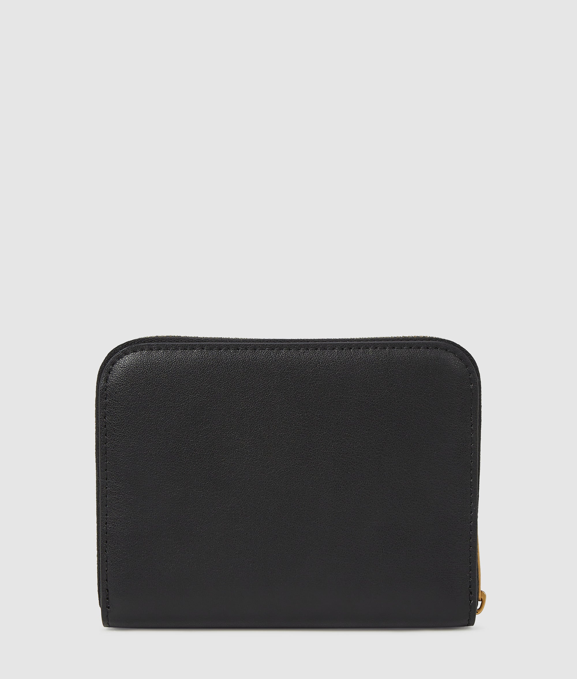 A sleek leather wallet with a secure zip closure and multiple card slots. finished with elegant hardware.?