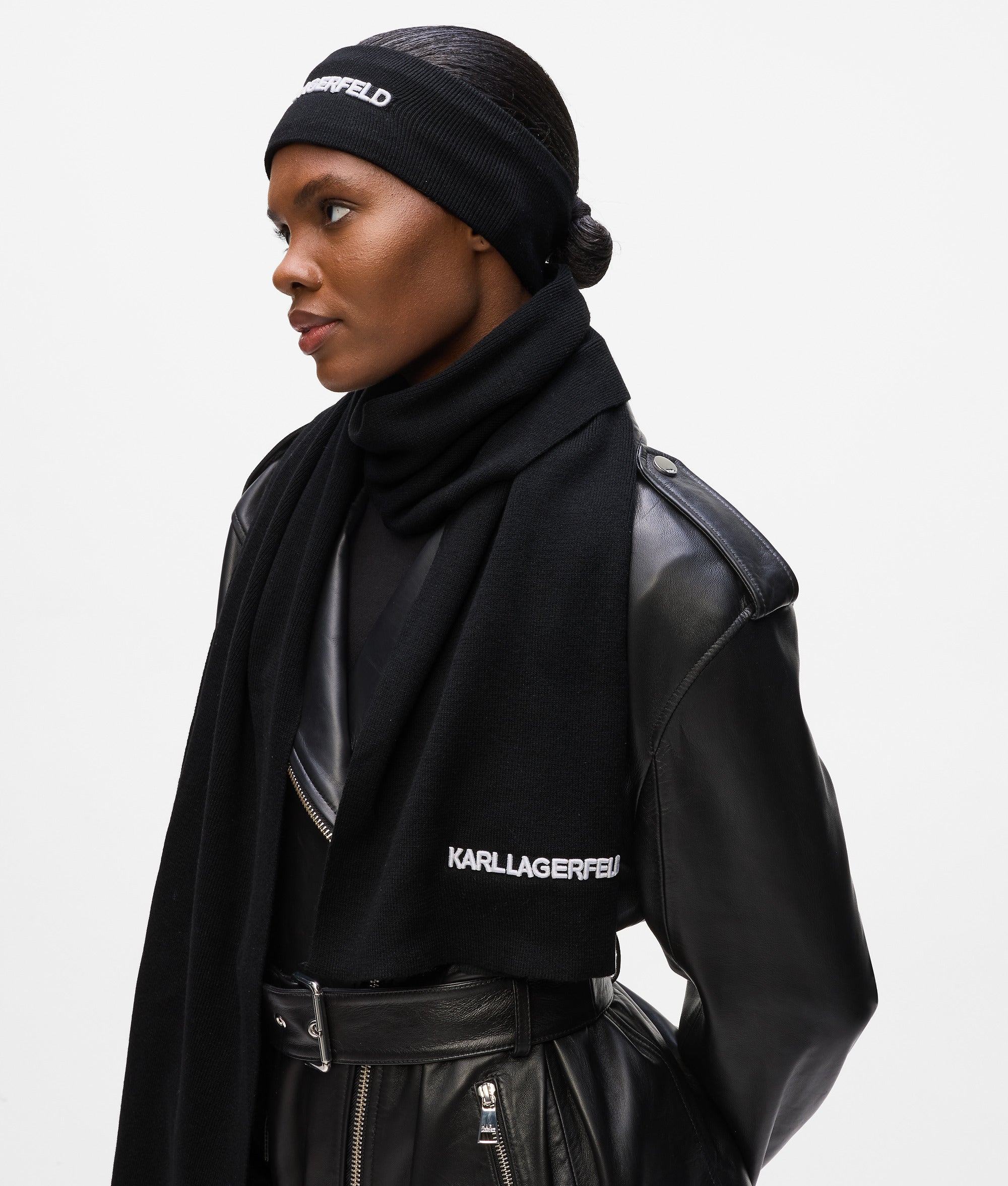 Featuring standout logo artwork. this rib-knit headband and matching scarf set add a confident touch to any look.