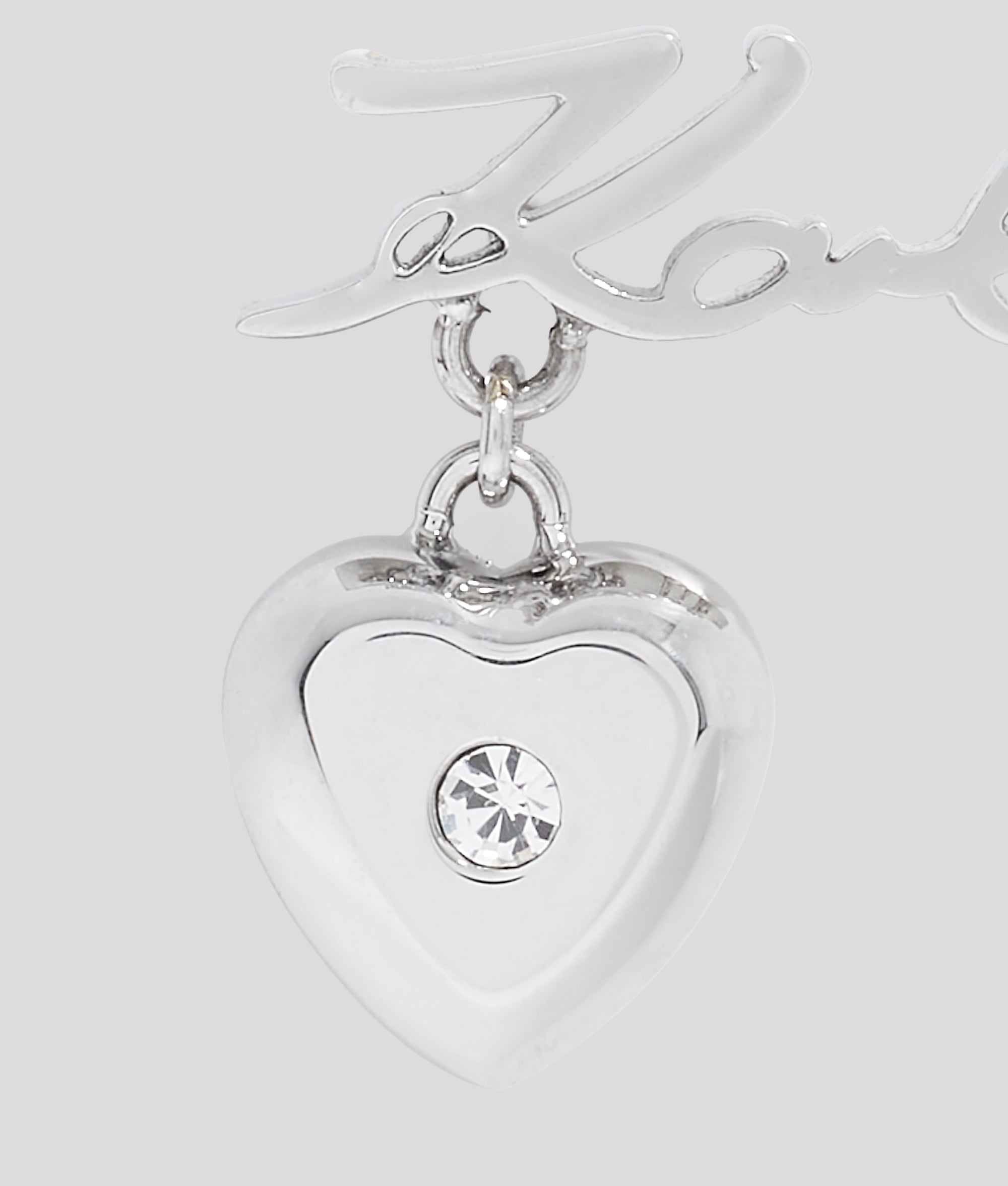 Bring edgy glamour to any look with this single drop earring. featuring KARL Signature and a single crystal-encrusted heart charm.