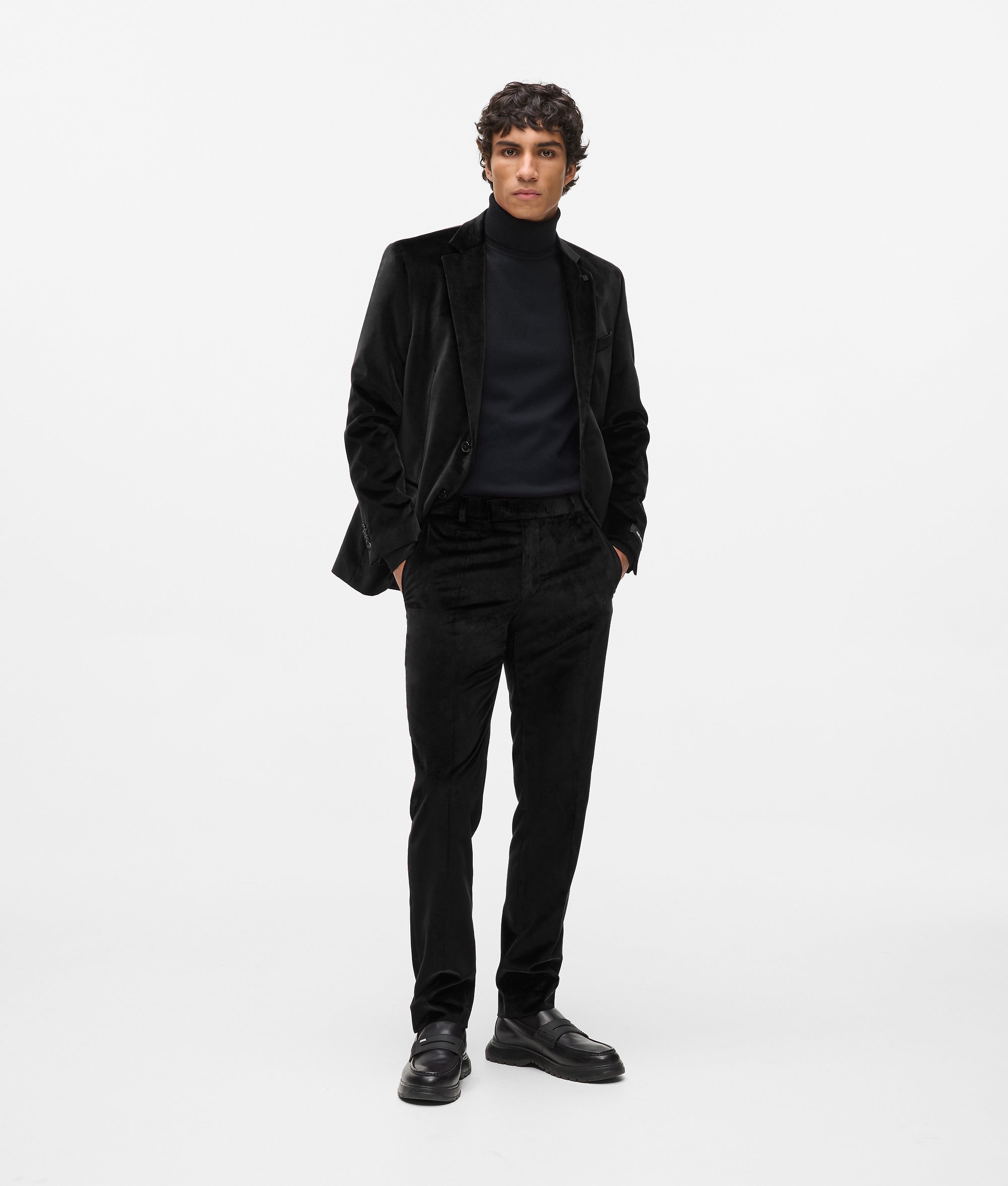 These velvet pants sculpt a sleek silhouette with subtle sheen and smooth woven texture. Concealed fly and angled pockets keep the look refined and poised.